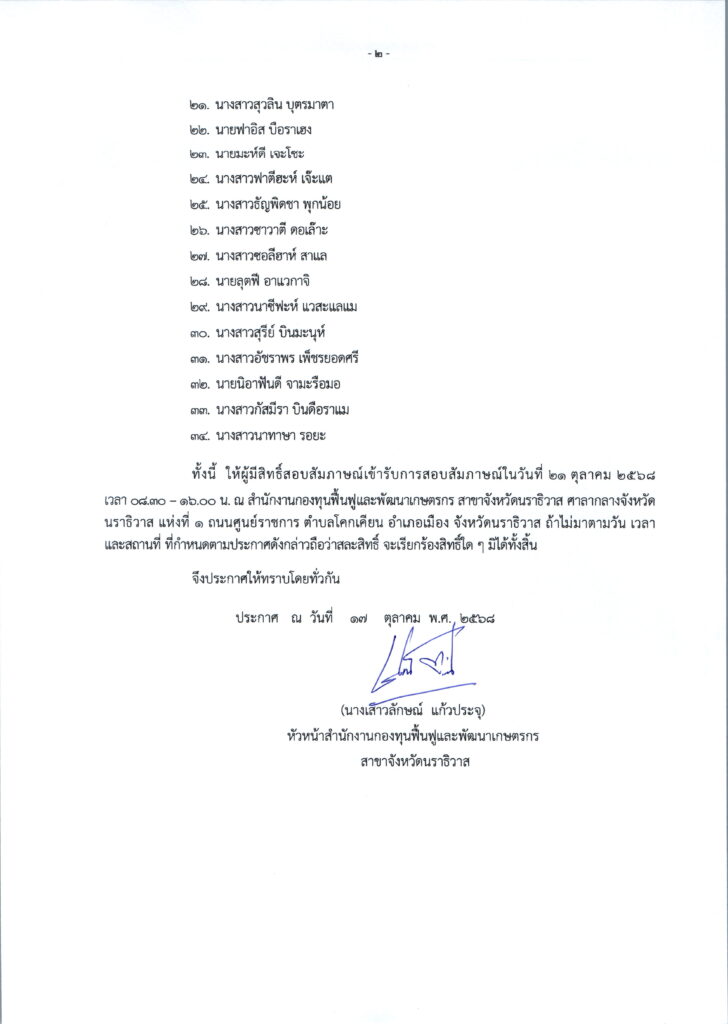 วันเดียวกัน สำนักงานกองทุนฟื้นฟูและพัฒนาเกษตรกร สาขาจังหวัดนราธิวาส ได้นัดเกษตรกรเพื่อจัดทำเอกสารการปิดบัญชีลูกหนี้เกษตรกรสมาชิกกองทุนฟื้นฟูและพัฒนาเกษตรกร จำนวน 1 ราย ซึ่งได้ชำระหนี้ครบถ้วนตามเงื่อนไขที่กำหนดเรียบร้อยแล้ว โดยเกษตรกรได้กล่าวขอบคุณสำนักงานกองทุนฯ ที่ได้มอบโอกาส และให้การสนับสนุนอย่างต่อเนื่อง จนสามารถแก้ปัญหาหนี้สิน และรักษาที่ดินทำกินไว้ได้สำเร็จ